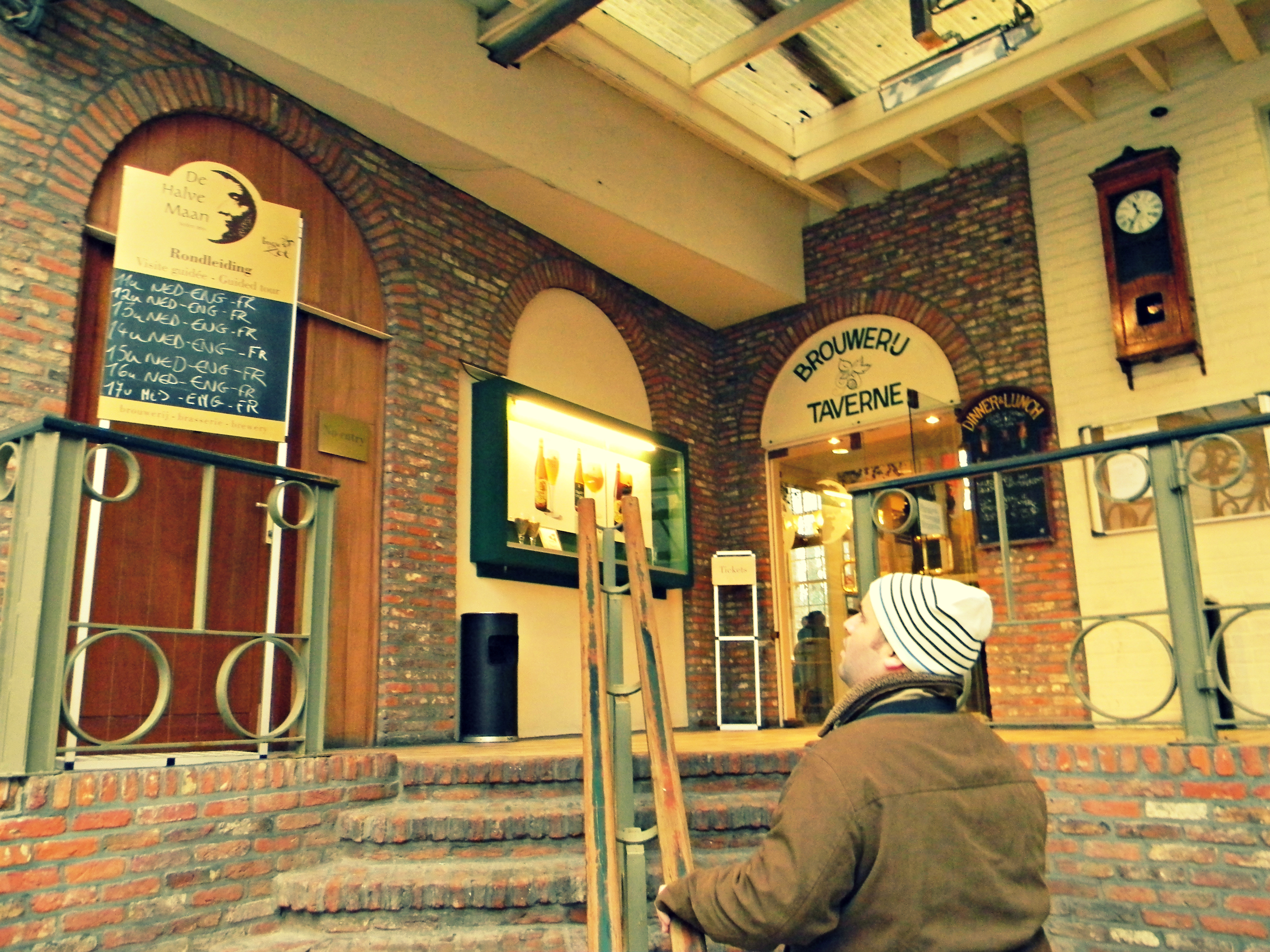En la medieval Brujas, a orillas de los canales y entre tanto cruzar puentes nos metimos en un lugar donde el aroma a cebada malteada nos llamaba. Un acceso por un pórtico viejo y unas cuantas mesas dispuestas para apoyar el codo y hacer varias flexiones de brazos, desde la mesa a la boca, ir y venir.